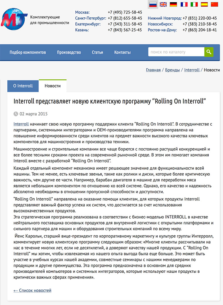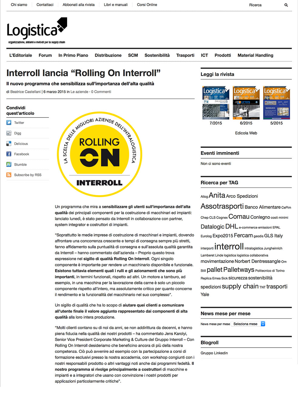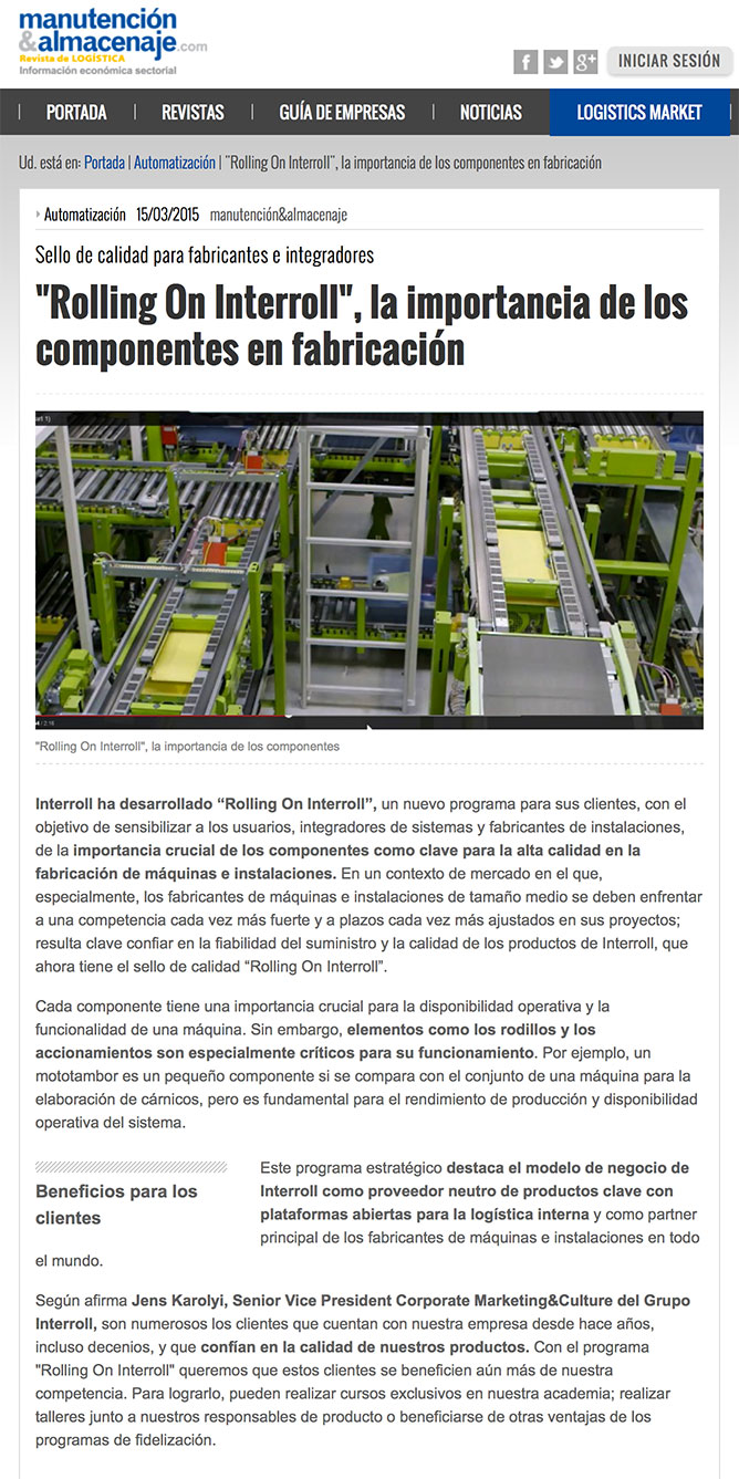 The Rolling On Interroll program was launched this year at the beginning of March on a global scale as a strategic initiative of the Interroll Group.